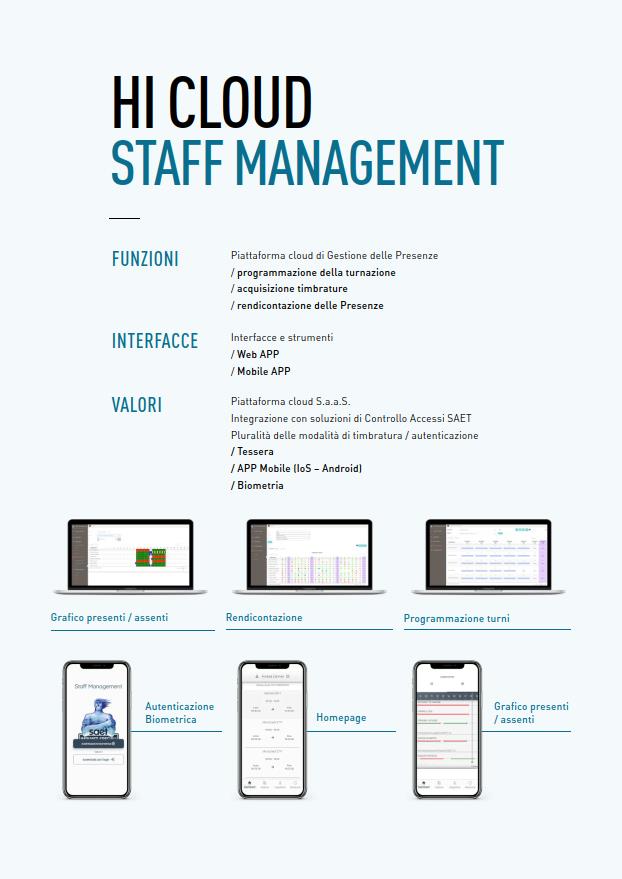 Saet Staff Management – Piattaforma cloud di Gestione delle Presenze / programmazione della turnazione / acquisizione timbrature / rendicontazione delle Presenze